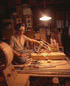 大正15年生まれ。父は風呂桶職人、祖父は船大工。家業の「三浦風呂製作所」を継ぐが、需要減もありミニチュア制作を始める。昭和56年(1981)、辻村寿三郎氏が花魁人形を手がける「吉原」展の妓楼製作を引受け、大反響となる。以後、各地の展覧会に作品を出品。令和元年(2019)6月永眠。享年92歳。