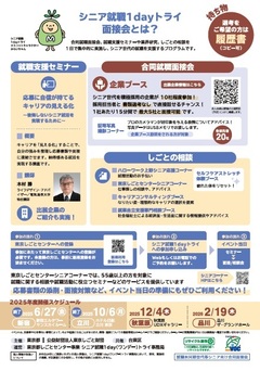 シニア向けの合同就職面接会、就職支援セミナー、業界研究、しごとの相談を1日で集中的に実施します