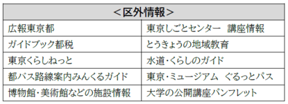 生涯学習情報コーナーでは、区内または近隣自治体の講座情報、大学等の教育施設の公開講座、博物館や美術館等のイベントなど、生涯学習に役立つ様々なチラシや閲覧冊子を設置し情報提供を行っています。
