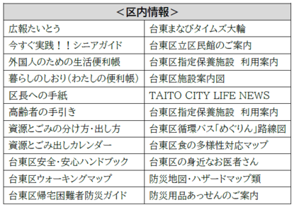 また、「広報たいとう」等の台東区からの広報紙等も設置しております。