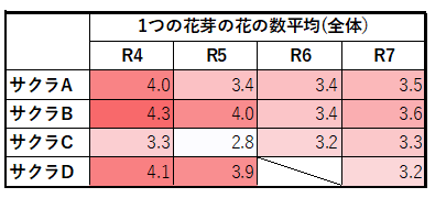 この数を確認するとサクラの元気度がわかるため、何輪ついているかを記録していきます。