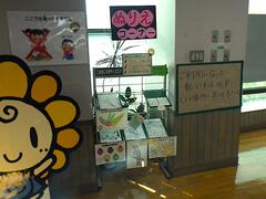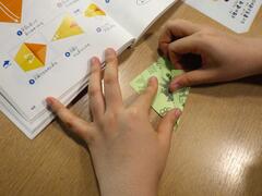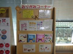 スタッフが「ふれあい館のチラシを再利用して作ったおりがみ」をご用意しています。