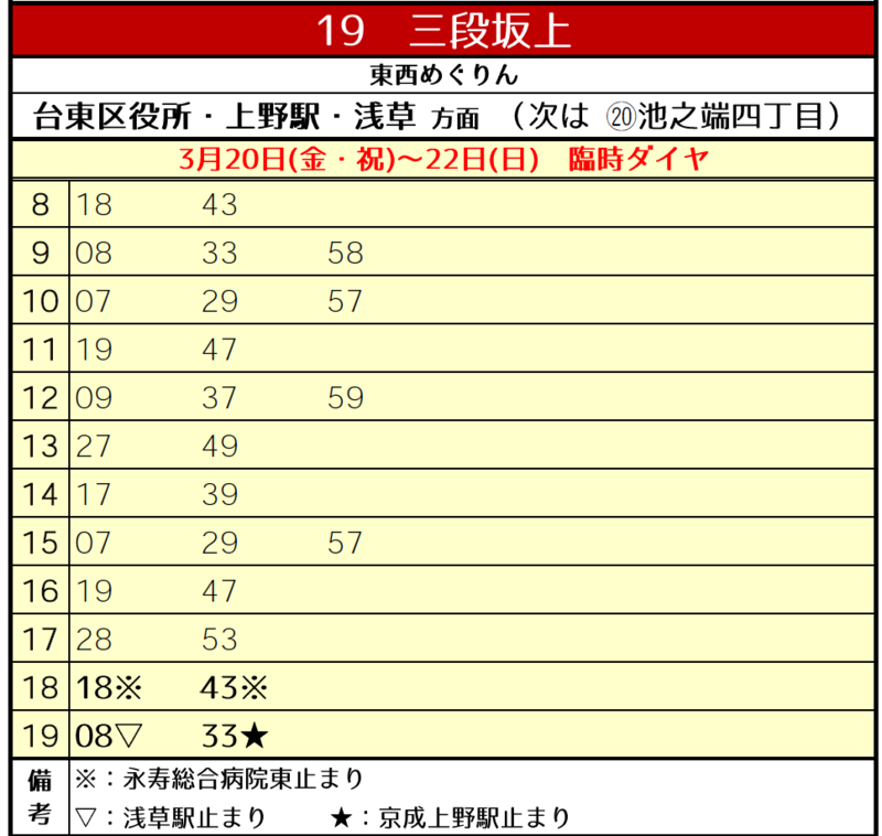 19番「三段坂上」停留所の発着時刻の変更について