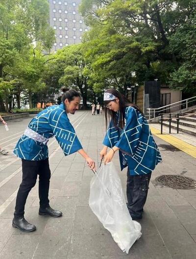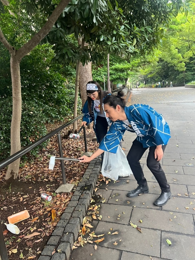 当日は3名で活動を行いましたが、法被姿が珍しかったのか、特に外国人の方々から注目を集め、写真を撮られたり、「何をしているの?」と声をかけられたりする場面もありました。今回の活動を通して、少しでも街ゆく人々が環境美化について考えるきっかけになっていれば嬉しく思います。