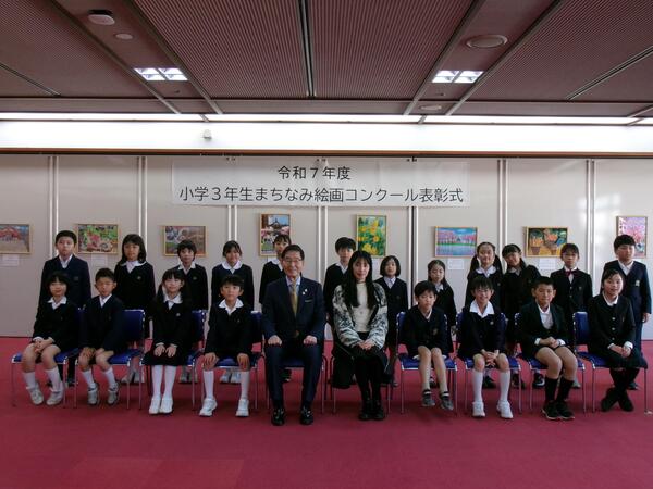 6月から9月にかけて区立小学校から絵画を募集したところ、965点の応募がありました。素晴らしい作品が多数ある中、厳正な審査を経て、入賞作品21点を決定し、令和7年12月7日に表彰式を行いました。