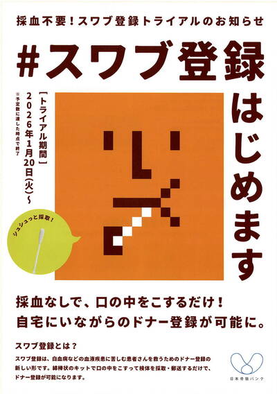 採血せずに、自宅に居ながらドナー登録が可能なスワブ(綿棒状の検体採取キット)よるトライアル