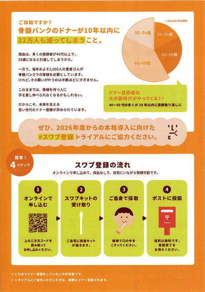 骨髄バンクドナー登録にご協力を!