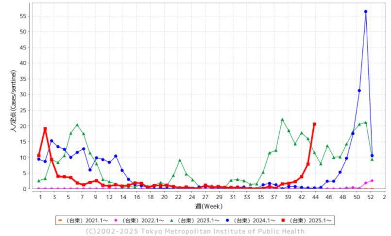 都内のインフルエンザ患者報告数が注意報基準を超えました