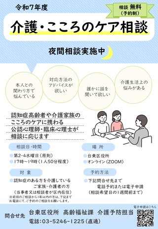 認知症高齢者を介護するご家族や介護者が抱える、介護する上での悩みやご本人との関わり方などについて、公認心理師・臨床心理士が相談に応じます。