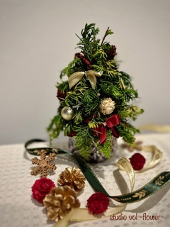 アーティフィシャルフラワー等を使って、クリスマスツリーを作ります。