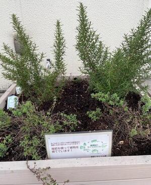 区役所屋上ガーデンの花壇で、栄養満点の堆肥を使ってハーブを育てています。