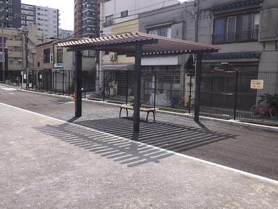 ボール遊びエリア、ミストパーゴラ(3基)、ベンチ、健康遊具