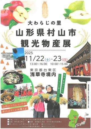 浅草寺の大わらじ奉納を機縁として始まった、友好都市山形県村山市の観光物産展が浅草寺境内で開催されます。