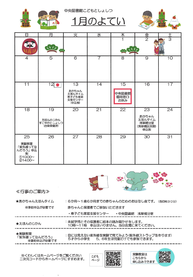 令和8年1月中央図書館 子ども向けイベント一覧(PDF:379KB)
