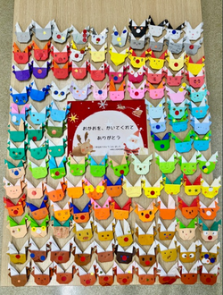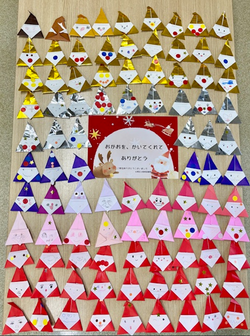 クリスマスツリーにかざったサンタとトナカイを展示しています。ぜひ見にきてください。