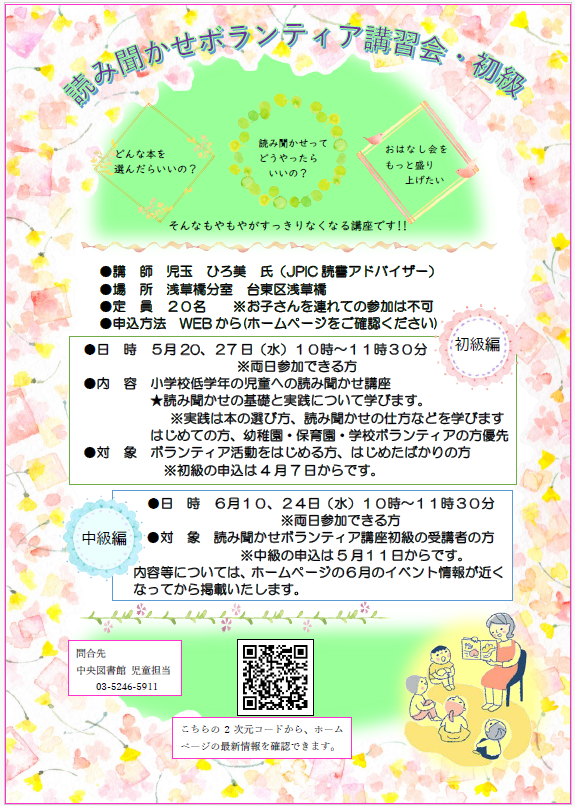 「読み聞かせボランティア講習会・初級」2回連続講座