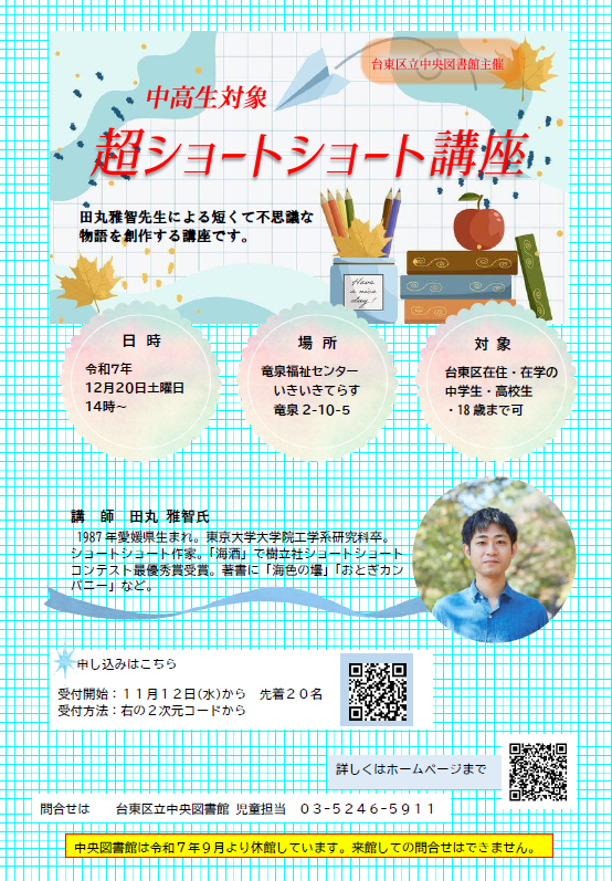 「超ショートショート講座」ちらしはこちらからダウンロードできます。(PDF:518KB)