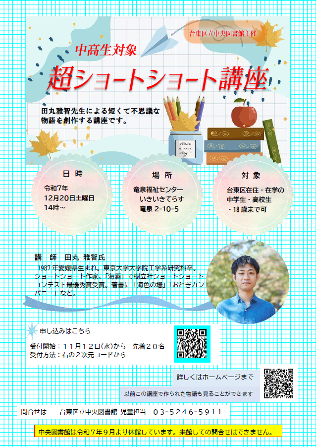 ショートショート作家の田丸雅智先生による、短い物語を創作する講座です。